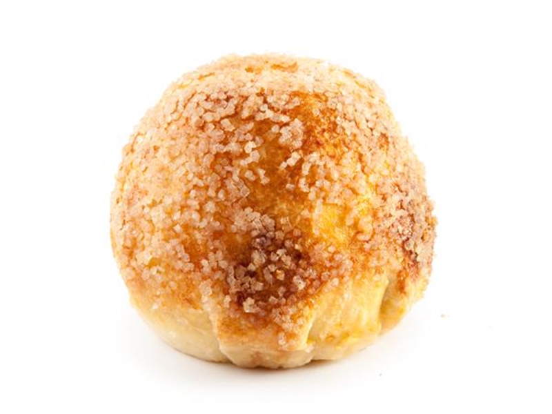 Frisse appel gevuld met een roomboter amandelspijs en kaneelsuiker, omringt met roomboter bladerdeeg. Bedekt met knapperige laag grove suiker.
