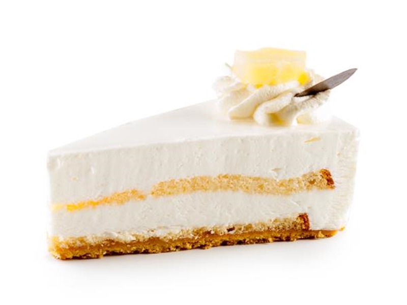Heerlijke frisse en luchtige kwark bavaroise in de smaak naturel met een laagje biscuit en afgewerkt met een slagroomrozet en een stukje vers fruit.