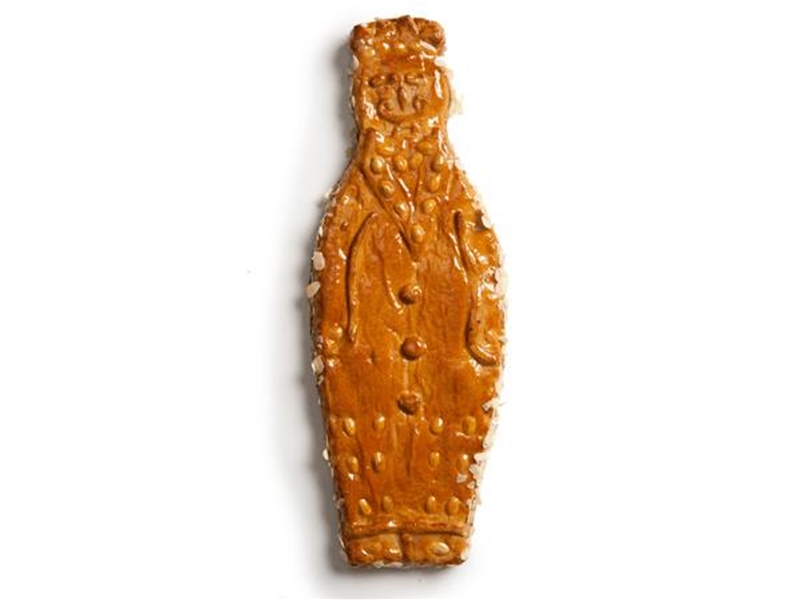 Origineel cadeau wanneer iemand Abraham gaat zien. Knapperige koekdeeg gevuld met roomboter amandelspijs en afgewerkt met amandelen, in de vorm van een abraham.