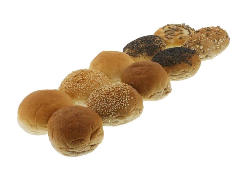5 witte en 5 bruine zachte mini bolletjes met en zonder diverse zaadjes.
