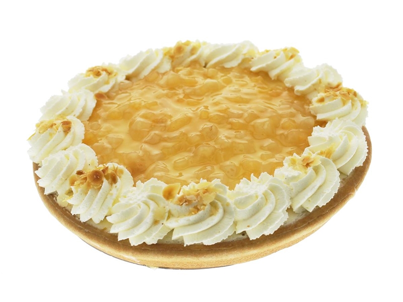 Luxe deegbodem met appelfruffi vulling, toefjes van de beste kwaliteit slagroom en afgemaakt amandelschaafsel.