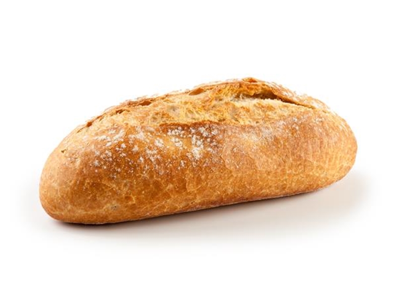 Lekker knapperig, langwerpig wit broodje.